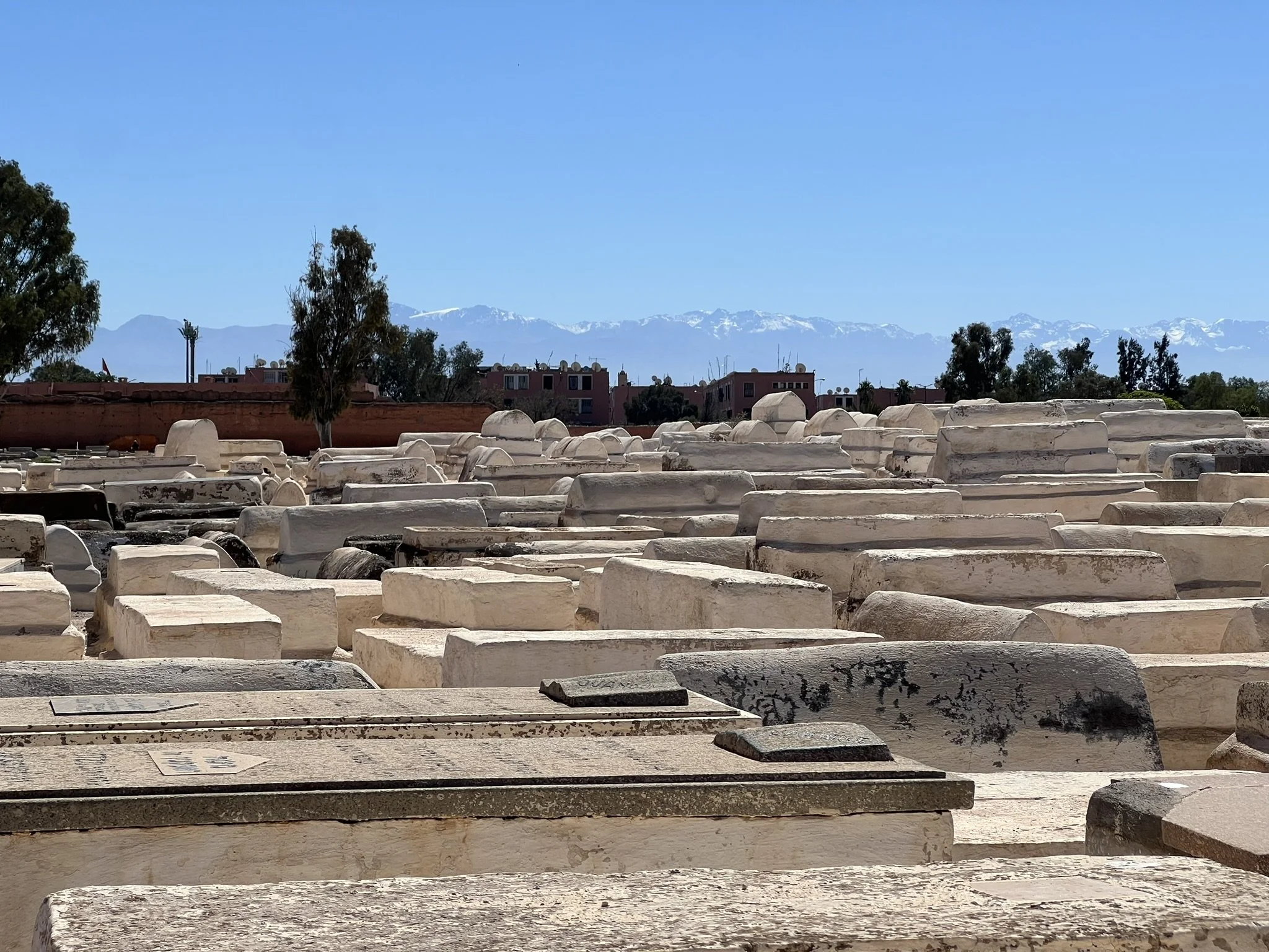 În apropiere de sinagogă, se poate vizita cimitirul evreiesc plătind un bilet de 10 MAD. Majoritatea mormintelor nu au inscripții și sunt unele peste care au crescut plante. Amplasarea este într-o zonă centrală și cu vedere directă spre munții Atlas. E un loc ce te umple de liniște, și dacă nu sunteți interesați de istoria locului, cel puțin pentru priveliște, merită să cumpărați biletul.
