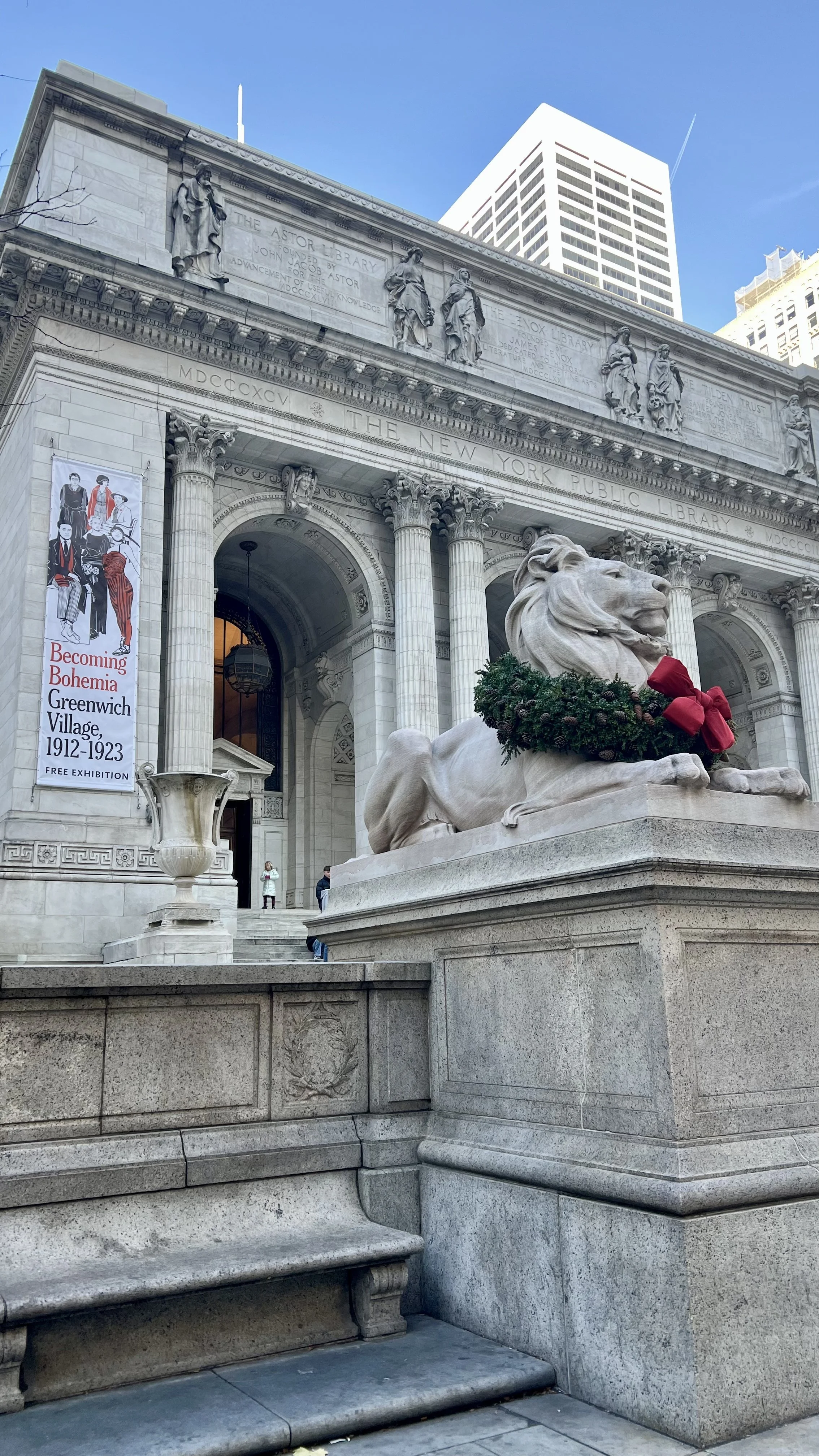 În New York Public Library se poate vizita gratis o cameră de lectură, împreună cu mai multe săli unde sunt amenajate expoziții. Când am fost era o expoziție despre mișcare suffragettes.