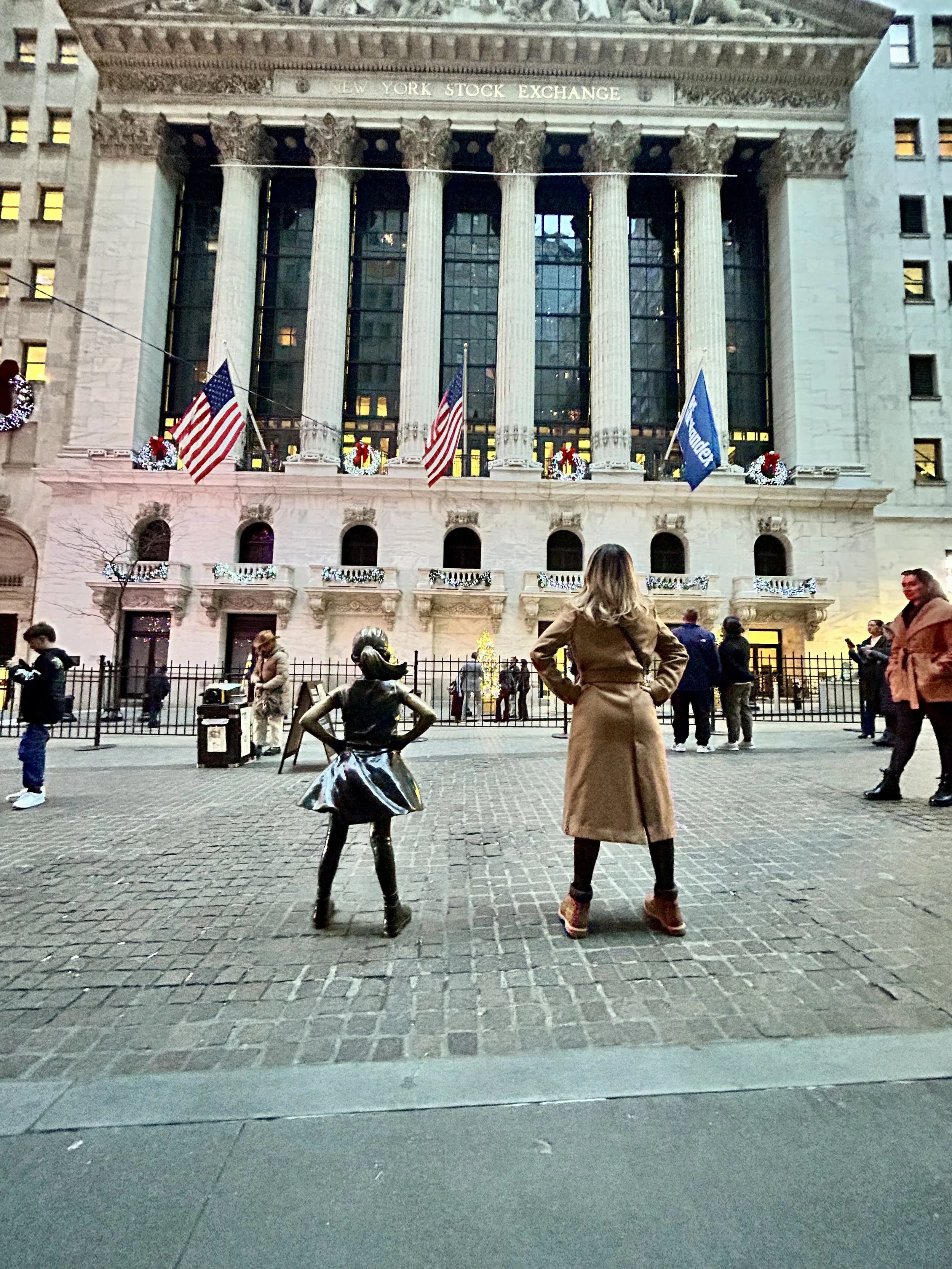 The Fearless Girl a fost amplasată in 7 martie 2017, cu o zi înainte de 8 martie, în fața taurului (se găsesc poze pe internet). Statuia promovează diversitatea în companii. La plângerea creatorului statuii Charging Bull a fost mutată în 2018 în fața New York Stock Exchange.